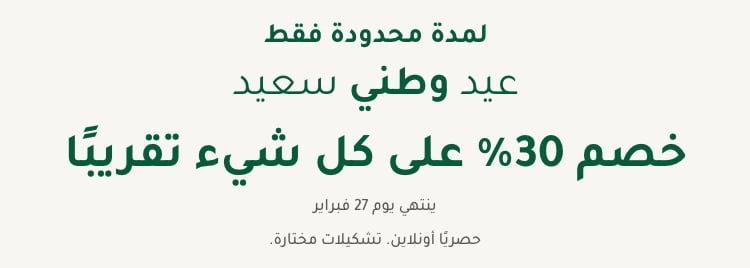 اليوم الوطني للكويت - خصم 30% على جميع المنتجات تقريبًا